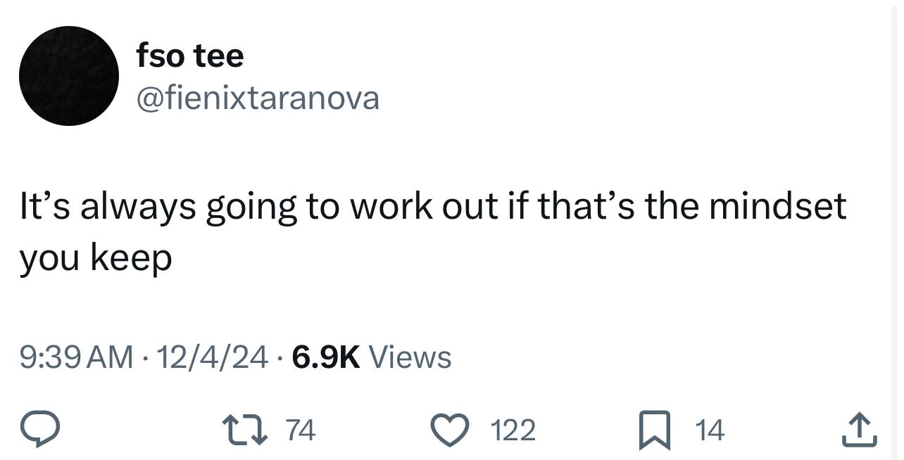 I tweeted this last week (tbh I tweet like this all of the time, follow ME!), and it rings true ALL THE TIME. Mindset is everything. If you fail for 100 days and quit on day 101, YOU ARE A LOSER. If you fail for 100 days and win on day 101, YOU ARE A WINNER. The only difference between the two was one gave up and one didn’t. The mindset of the winner vs the loser over those 101 days was VERY different. The winner probably only thought about winning while the loser dreamed of what it would be like to just give up, or if someone handed that win to them. Wins don’t come overnight. They come with preparation and the right mindset. Thoughts materialize into actions and then eventually results. Don’t ever forget this. What you think is what you become.