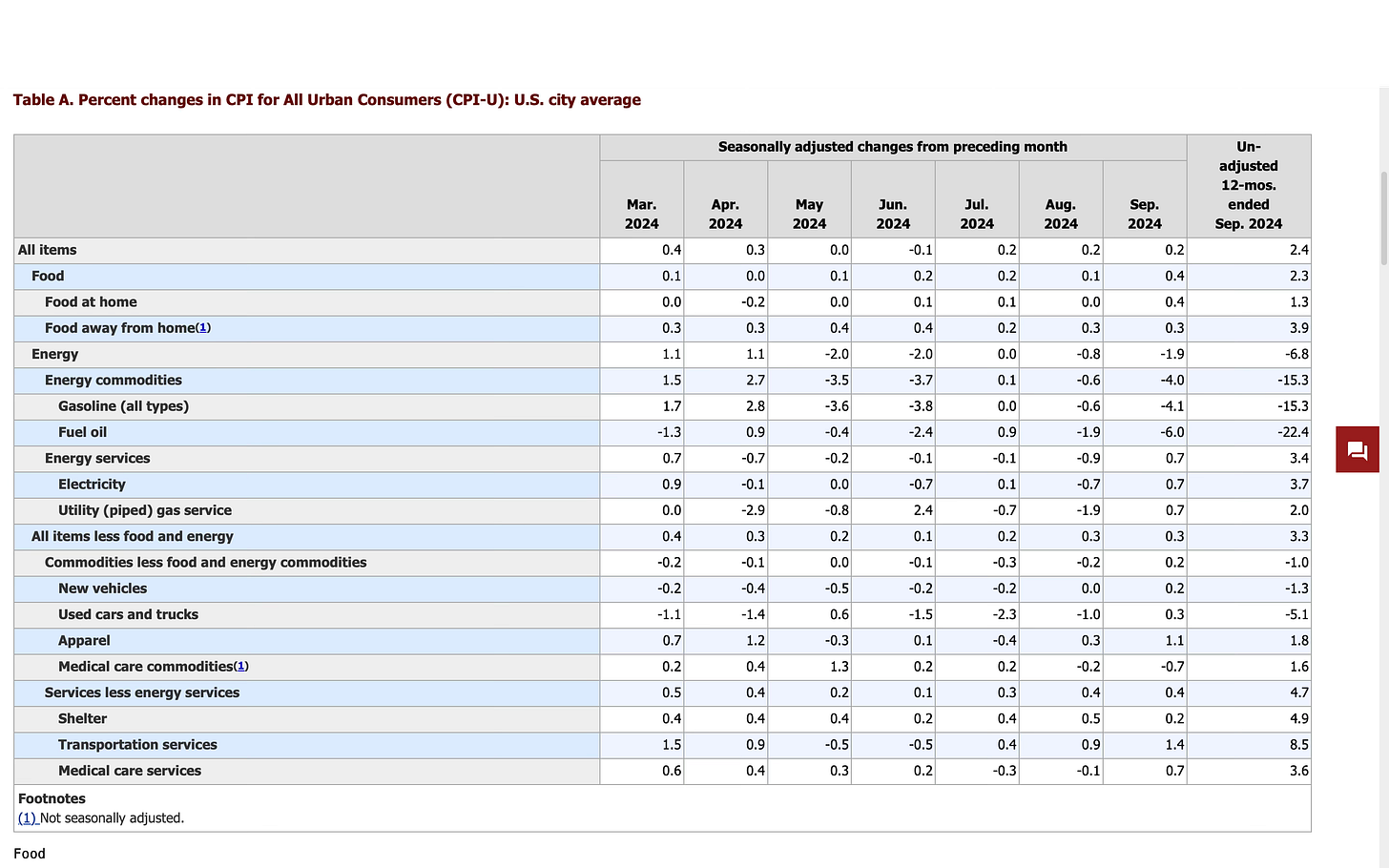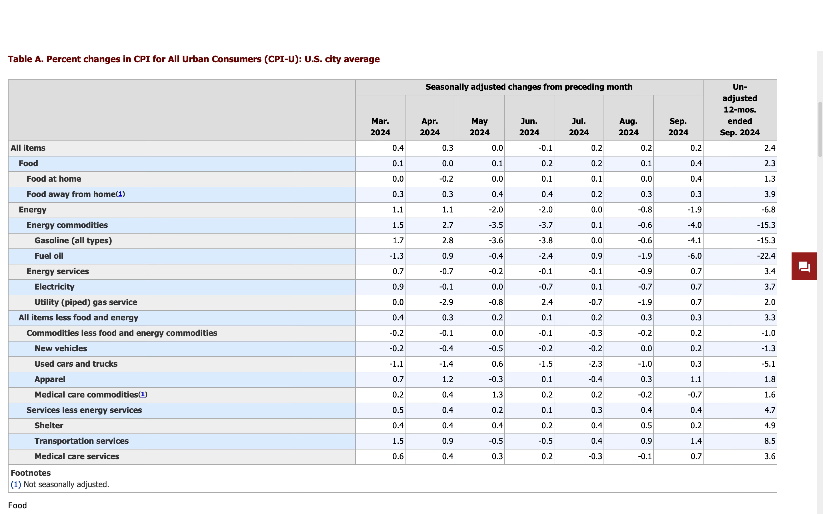 Consumer price index: a measure of the average change over time in the prices paid by urban consumers for a market basket of consumer goods and services. CPI rose 0.2% in September. (dated October 10, 2024